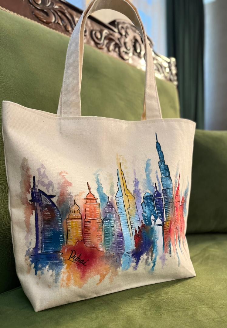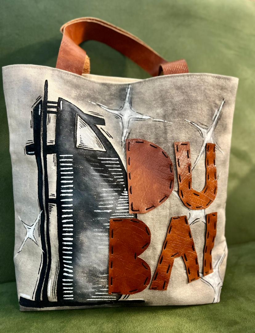 Handbags and Backpacks- 2 - Embroidered Leather Handbag Burj Al Arab Design Embroidered Leather Handbag Made of natural fibers and colors DETAILS 45 AED
